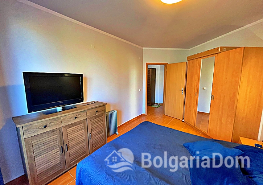 Просторна двухкомнатная квартира расположена в комплексе „Панорама Дримс“. Комплекс Panorama Dreams расположен в 100 метрах от пляжа, имеет большую обустроенную территорию, на которой находятся два больших плавательных бассейна, с детскими зонами, бар, спортивная площадка, теннисный корт, парковка, рецепция и охрана.