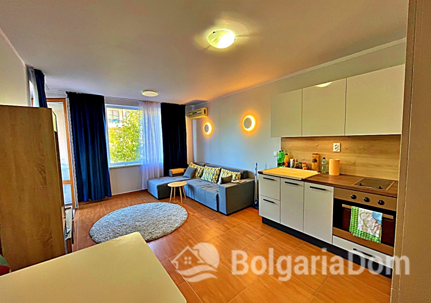 Предлагаем на продажу просторную квартиру с одной спальней в большом комплексе в 100 метрах от моря на курорте Святой Влас.