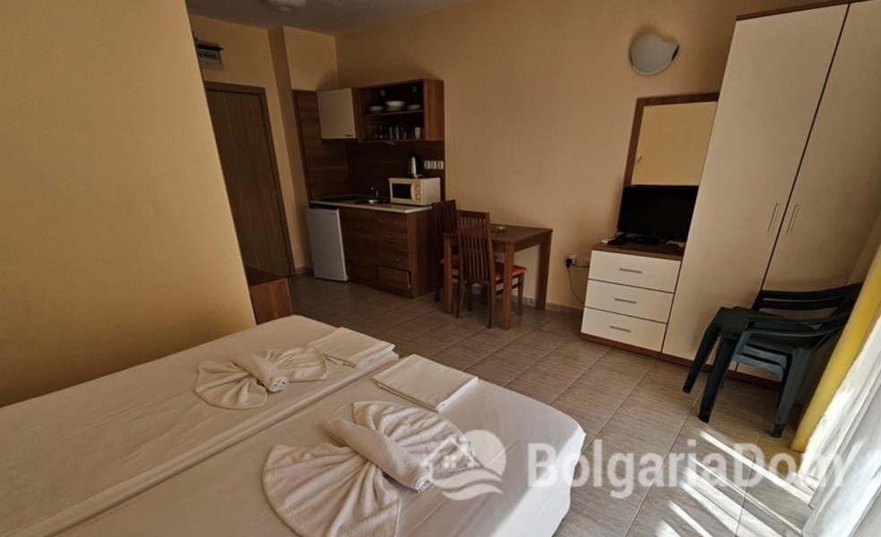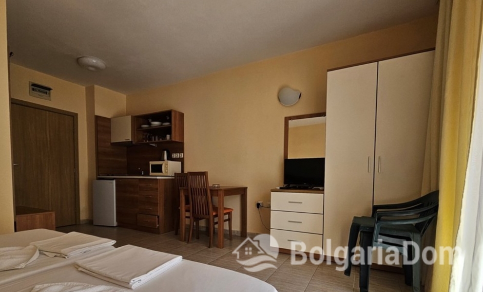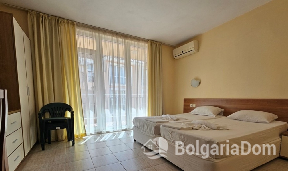 Предлагаем Вашему вниманию квартиру-студию с прекрасным видом на бассейн, расположенная на четвертом этаже комплекса Pollo Resort в Солнечном Берегу. Площадь квартиры составляет 42 кв.м. Квартира находится в отличном состоянии и готова к немедленному заселению или сдаче в аренду. Она выходит на юг-восток.