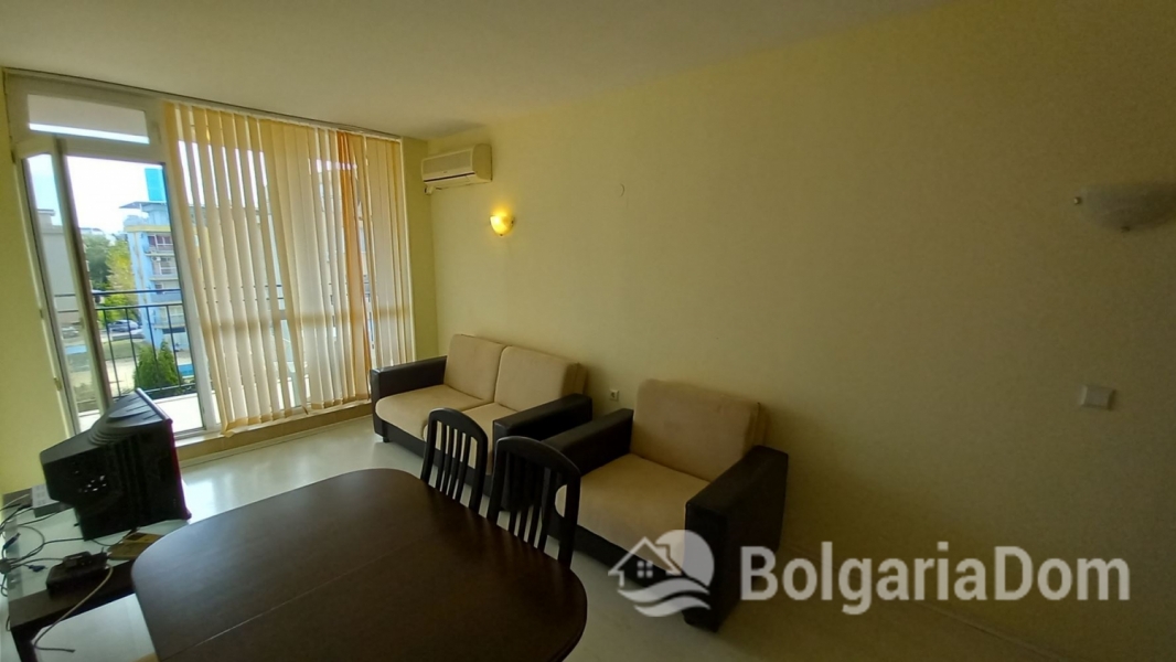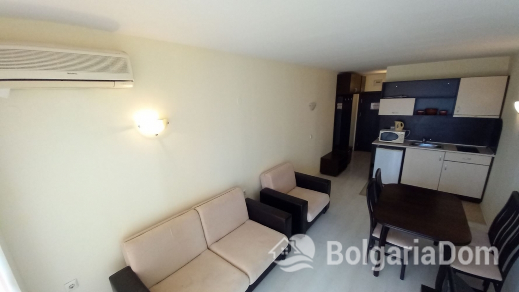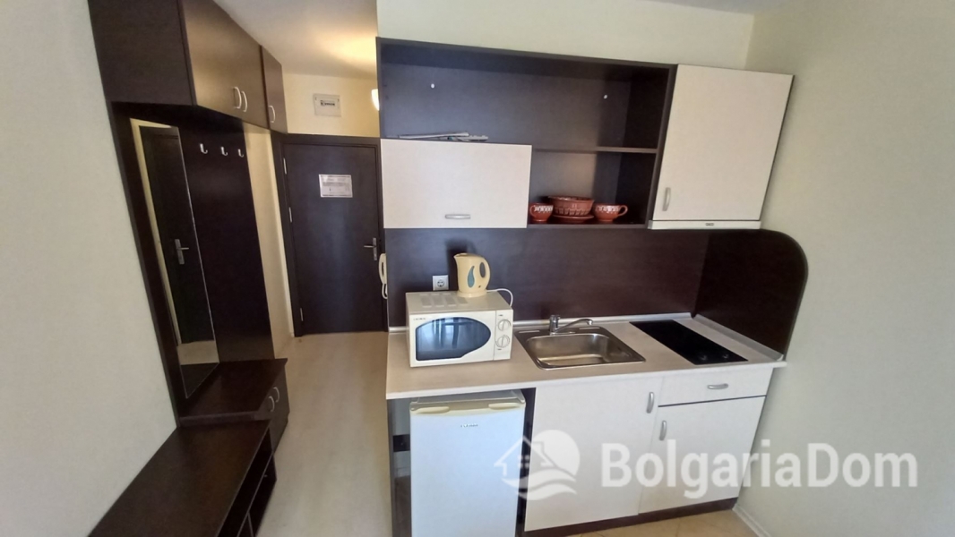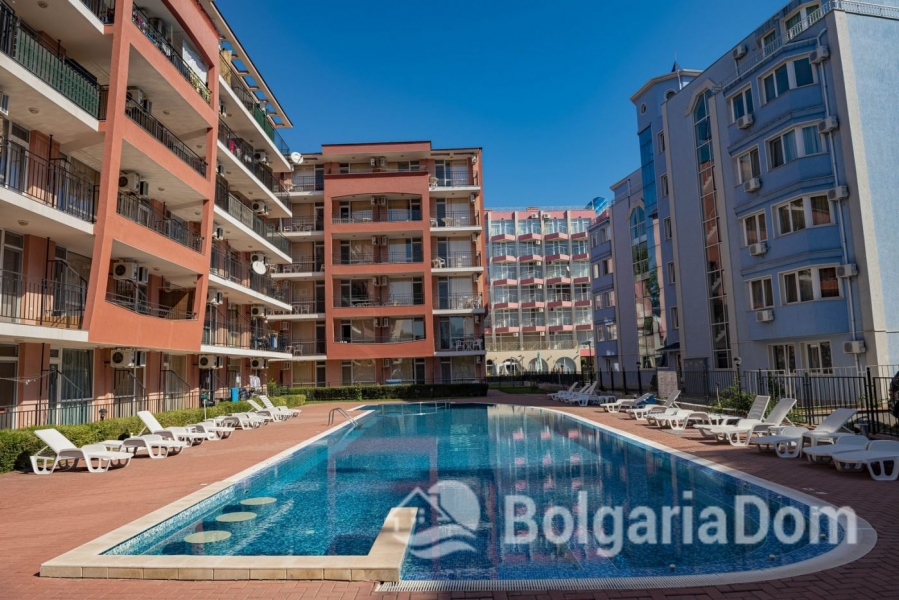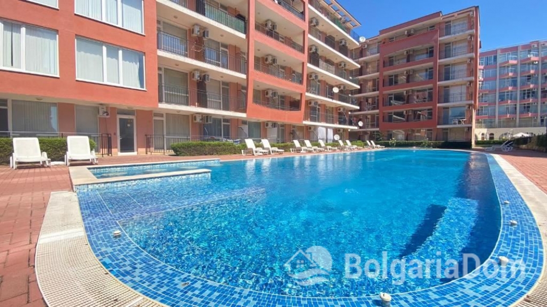Предлагаем на продажу квартиру-студию с видом на бассейн в благоустроенном комплексе на курорте Солнечный Берег.