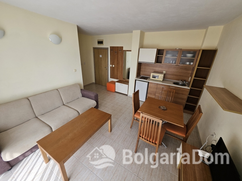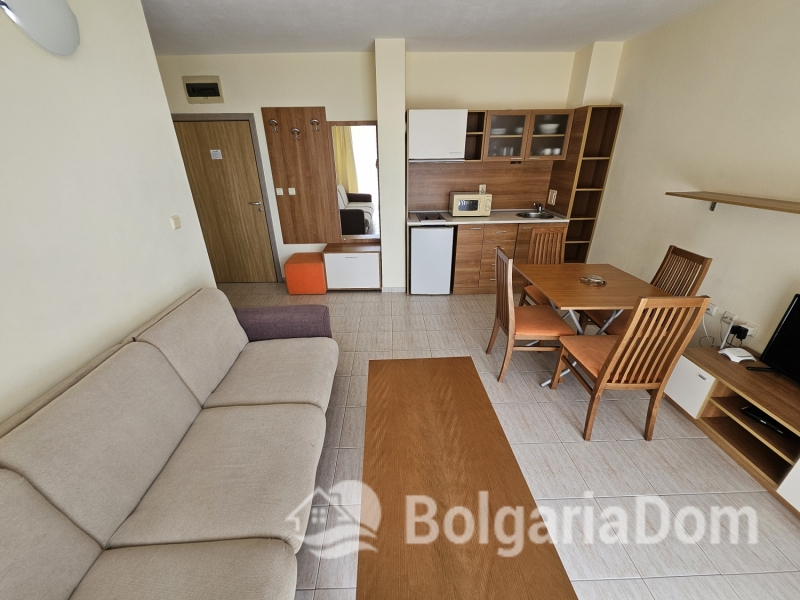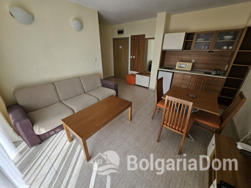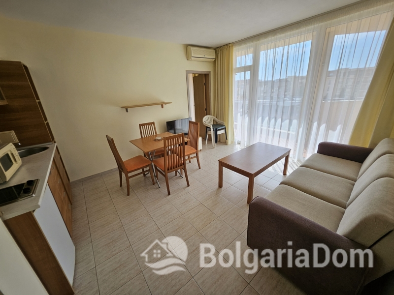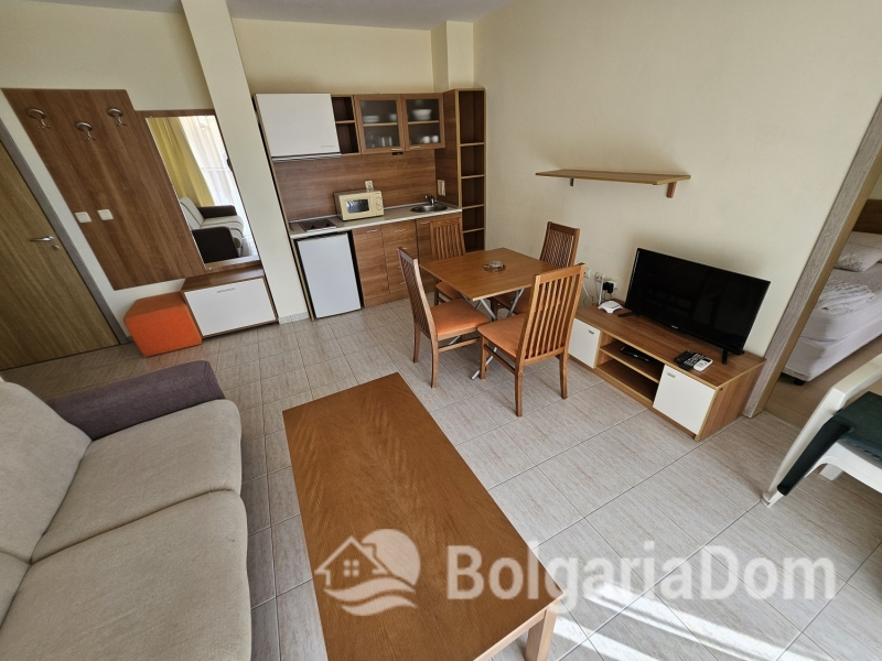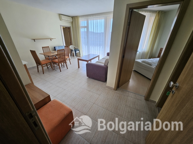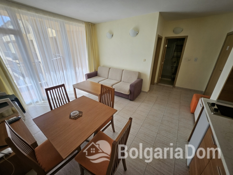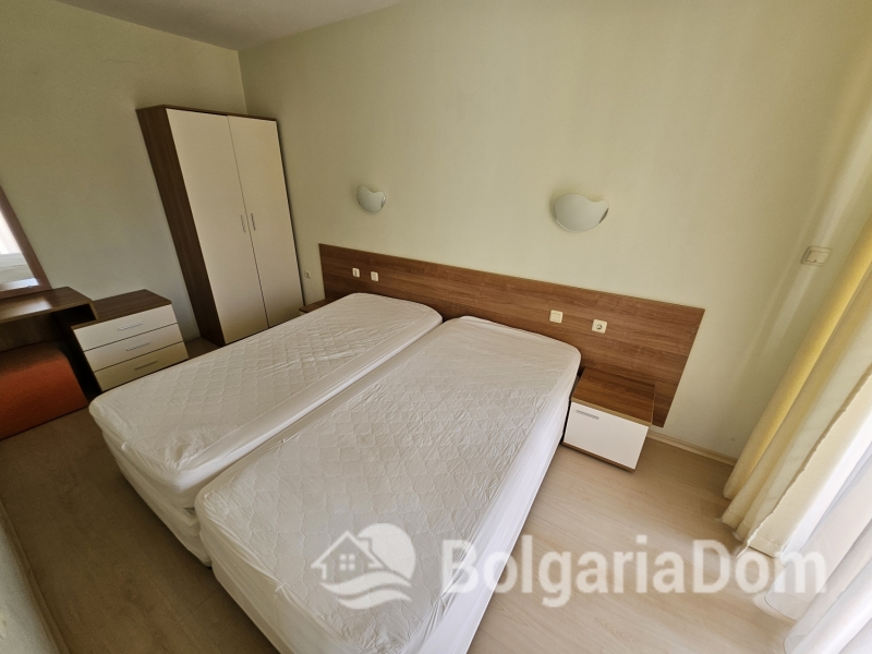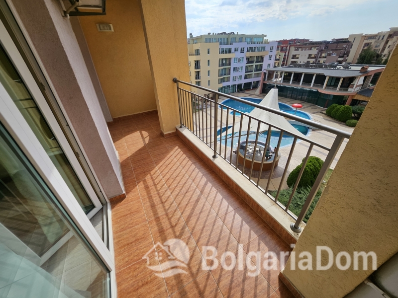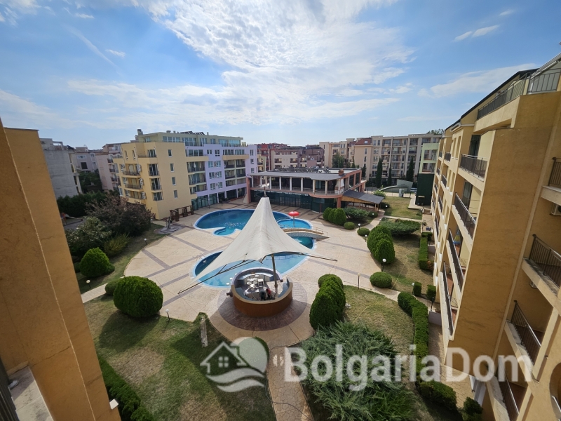 Предлагаем на продажу квартиру с двумя спальнями и с видом на бассейн в комплексе "Поло Резорт" в южной части курорта Солнечный Берег.