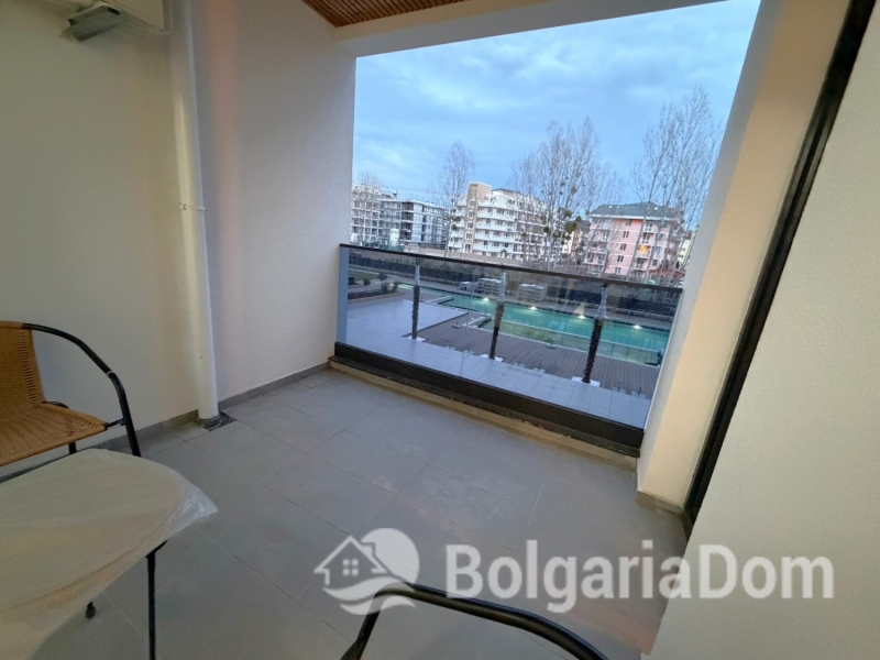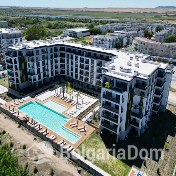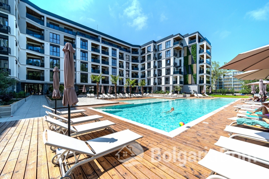 Квартира расположена в современном инновационном здании со стильной архитектурой. Комплекс обращает внимание на богатое озеленение и наличие парка перед ним, а также на инновационные решения в озеленении фасада и на экологически чистое строительство. Функциональность и стиль дополняются бескомпромиссным качеством и отличным расположением в самом зеленом районе Солнечного Берега. Концепция проекта дает возможность жильцам окунуться в стильный комфорт и спокойствие как во время летнего отдыха, так и при круглогодичном проживании.