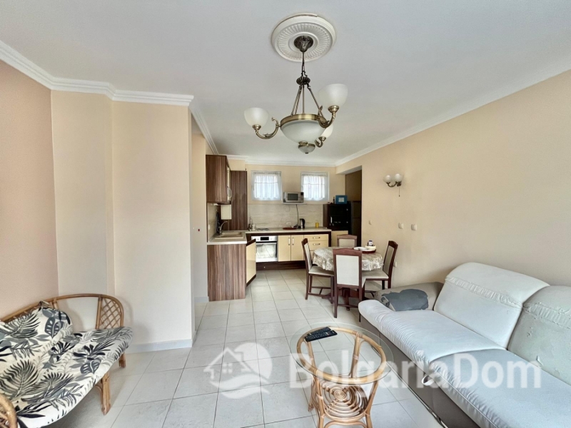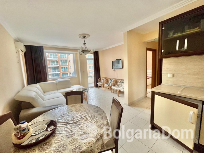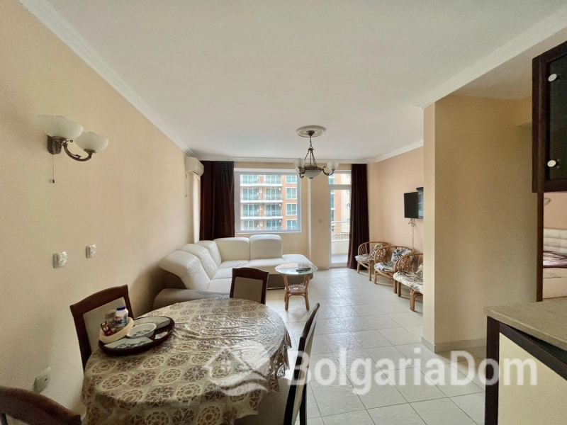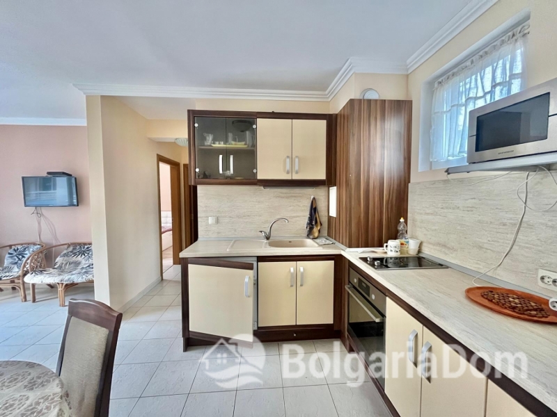 Предлагаем на продажу светлую и просторную квартиру с двумя спальнями и с видом на бассейн в жилом комплексе с невысокой таксой поддержки Лагуна 3, Солнечный Берег.
