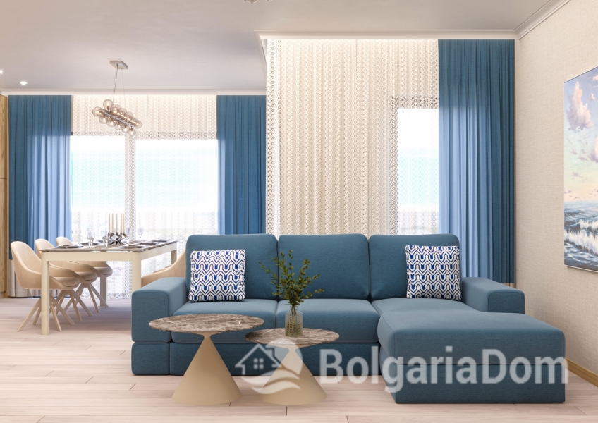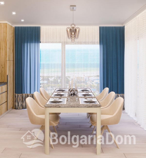 Новый комплекс уже конструктивно готов, идут отделочные работы. Здание расположено в 600 метрах от роскошного песчаного пляжа. Проект сочетает удобное расположение, современную концепцию и комфортные условия для проживания и инвестиций в недвижимость у моря в Болгарии.