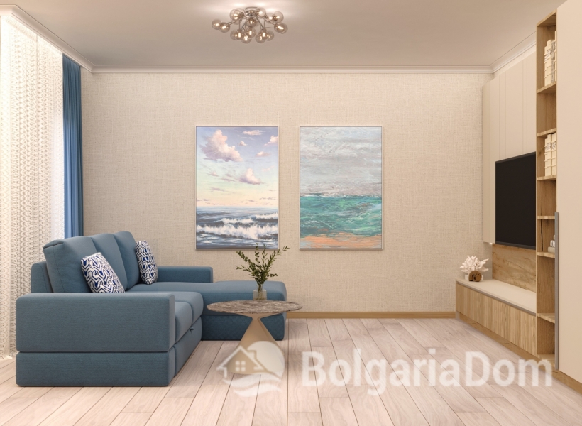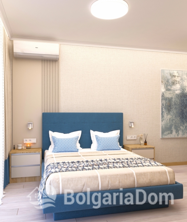 Предлагаем на продажу просторную квартиру с одной спальней в новым жилом комплексе в центральной части Солнечного Берега. Рассрочка до 4 лет.