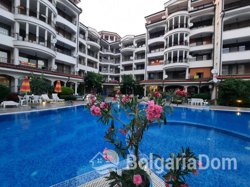 Oferujemy Państwu doskonały apartament typu studio w kompleksie Chateau Valon. Château Valon to nowoczesny kompleks położony w zachodniej części Słonecznego Brzegu. Plaża oddalona jest o zaledwie 450 metrów. W pobliżu znajduje się wiele udogodnień, takich jak kawiarnie, restauracje, kasyna, centra handlowe i wiele innych. Jest to zadbana część kurortu z dobrze rozwiniętą komunikacją. Château Valon składa się z dwóch budynków. Okolica jest pięknie zagospodarowana. W wejściach zamontowano nowoczesne windy. Udogodnienia i usługi obejmują recepcję, basen z wydzieloną częścią dla dzieci, restaurację, kawiarnię-bar, centrum fitness, supermarket oraz parking. Obiekt jest również chroniony i monitorowany. Château Valon jest już gotowy do użytku, zgodnie z ustawą nr 16. Roczna opłata za utrzymanie wynosi 10 euro za metr kwadratowy. Apartament typu studio ma powierzchnię 43 metrów kwadratowych. Składa się z przedpokoju, przestronnego pokoju z aneksem kuchennym, łazienki oraz balkonu z pięknym widokiem na basen. Apartament znajduje się na 3. piętrze. Jest umeblowany i w doskonałym stanie.