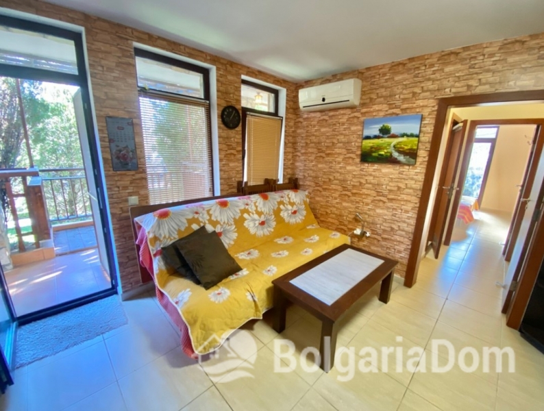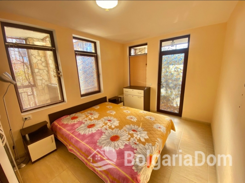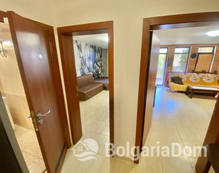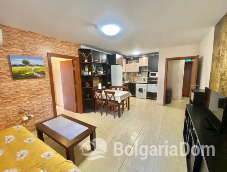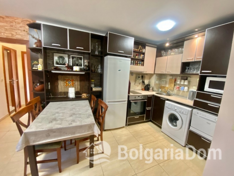 Układ: Hol wejściowy, salon z kuchnią i jadalnią, dwie sypialnie, dwie łazienki z prysznicami, duży taras i mały balkon. Wykończenie i umeblowanie: Sprzedawane pod klucz, z wysokiej jakości meblami i sprzętem AGD. Apartament ma powierzchnię 89 m². Apartament znajduje się na parterze.