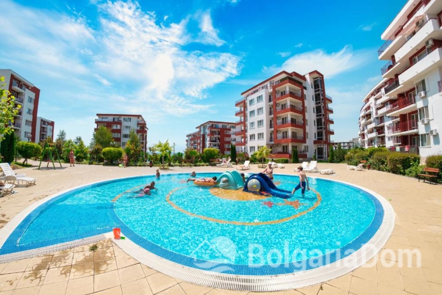Oferujemy na sprzedaż doskonały apartament z trzema sypialniami z pięknym widokiem na morze i basen w kompleksie Panorama Fort Beach w Świętym Własie.