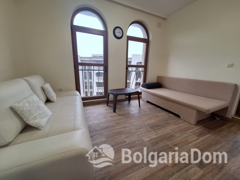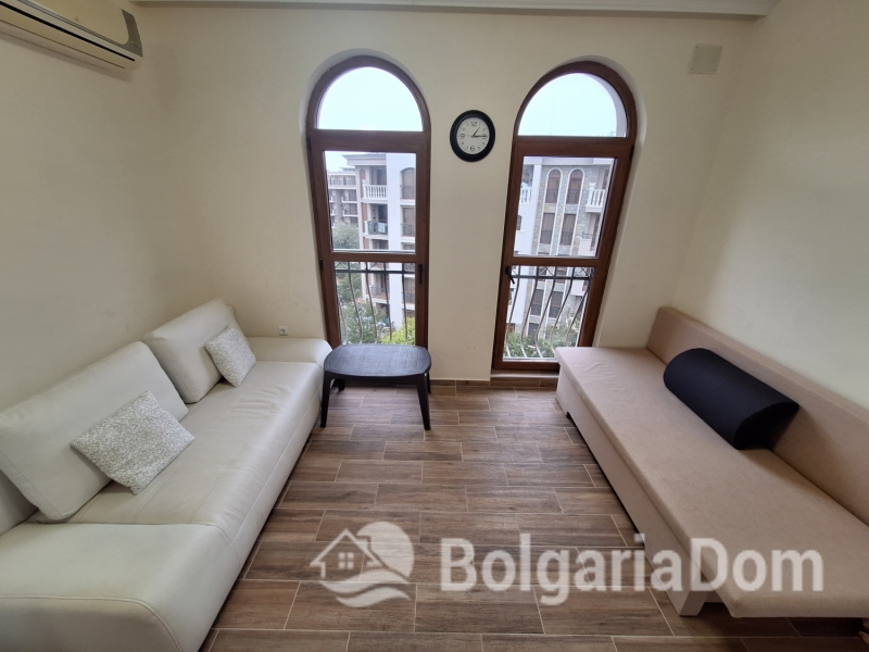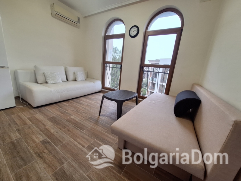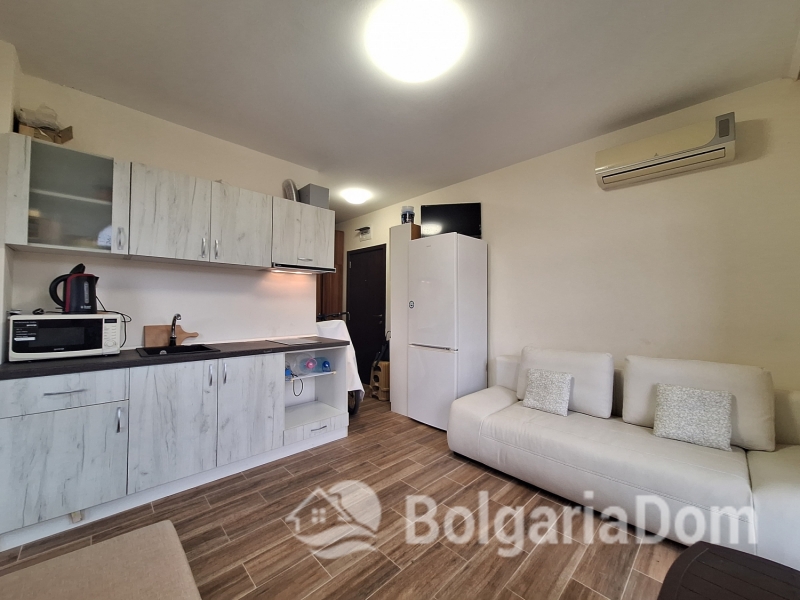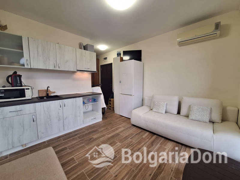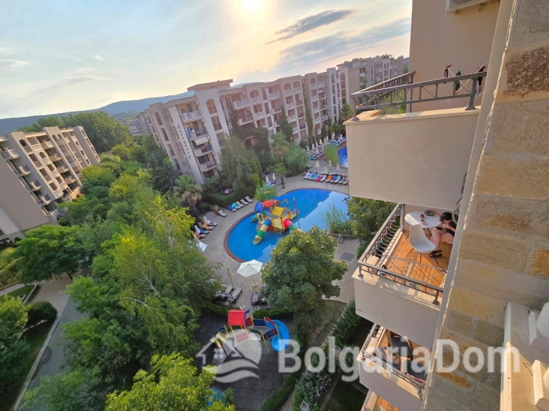 Oferujemy na sprzedaż przytulne studio z pięknym widokiem z balkonu w jednym z najbardziej prestiżowych kompleksów w Słonecznym Brzegu – Cascadas Family Resort. Ten ogrodzony kompleks położony jest w zadbanej, północno-zachodniej części kurortu, zaledwie 800 metrów od przestronnej, piaszczystej plaży.