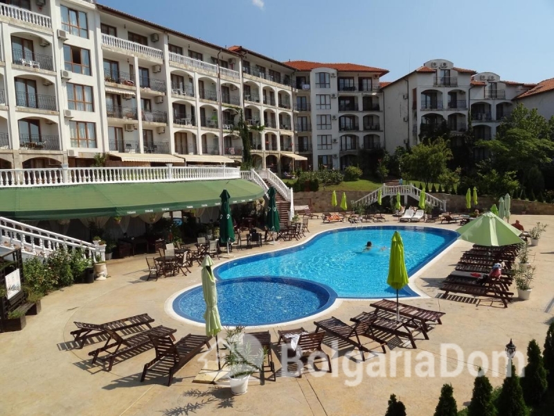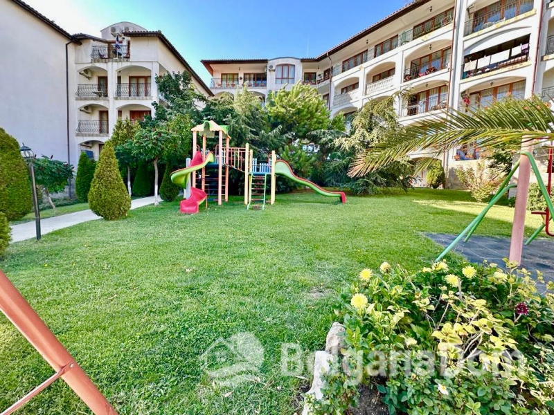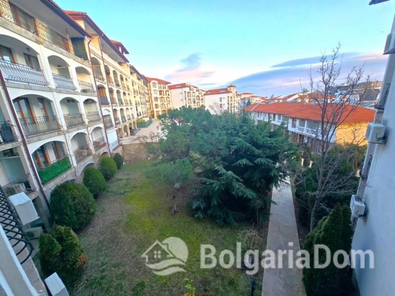 Пропонуємо на продаж двокімнатну квартиру з видом на зелену територію комплексу Тріумф у самому центрі курорту Святий Влас.