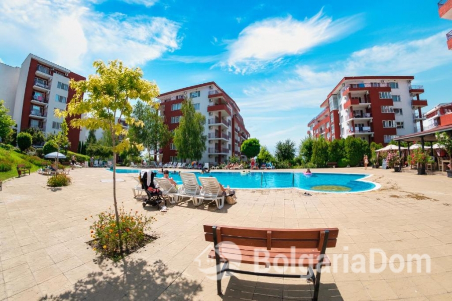 Приголомшливий комплекс розташований на першій береговій лінії курорту Святий Влас за 50 метрів від моря і відомий своєю чудовою інфраструктурою і багатим озелененням, де гармонійно поєднуються свіжість гірського і морського повітря. дітей. На упорядкованій території комплексу Ви знайдете ресторан, кафе, магазини, перукарню, є обладнані ігрові та спортивні майданчики. Цілодобова охорона. Паркування. Поруч із комплексом є вся необхідна для комфортного відпочинку та проживання інфраструктура. У 3-х хвилинах ходьби розташована автобусна зупинка. Відмінне транспортне сполучення.