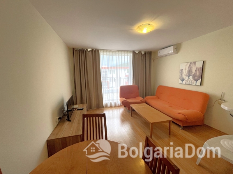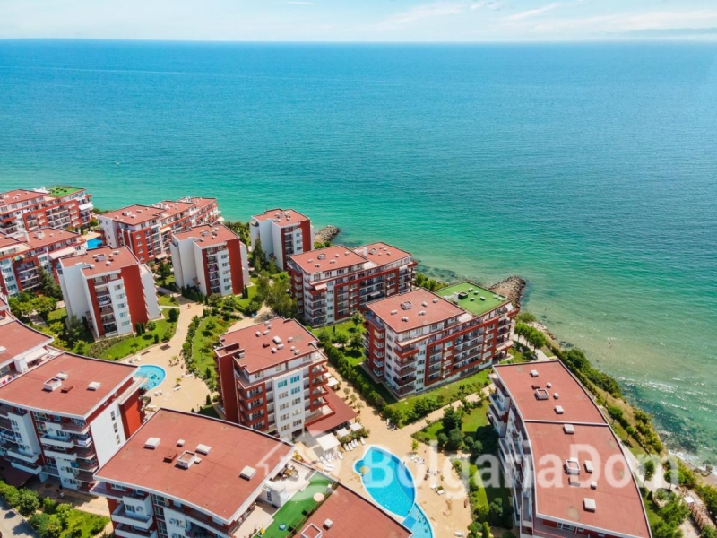 Пропонуємо на продаж двокімнатну квартиру з великою терасою і панорамним видом на море на першій лінії у великому сімейному комплексі "Гранд Різор Форт Нокс", Святий Влас. Документи готові до угоди.